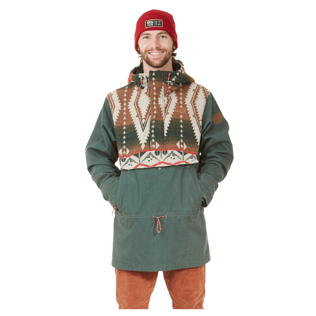 This pullover jacket features a polycotton canvas that can be waxed with Beewax for added waterproofness and a flannel hood lining. With its large pouch pocket, bring the small essentials you need on any adventure. Last but not least, its adjustable cuffs and hood with drawcords provide additional protection against the elements.